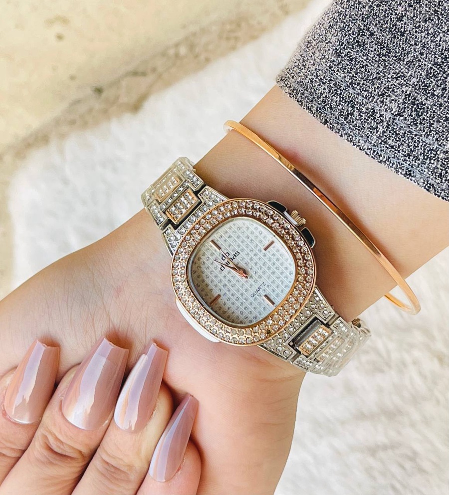 ساعة داماس مرصعة بالكريستال شبه الالماس
