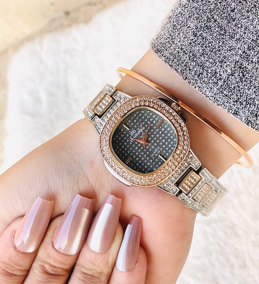 ساعة داماس مرصعة بالكريستال شبه الالماس