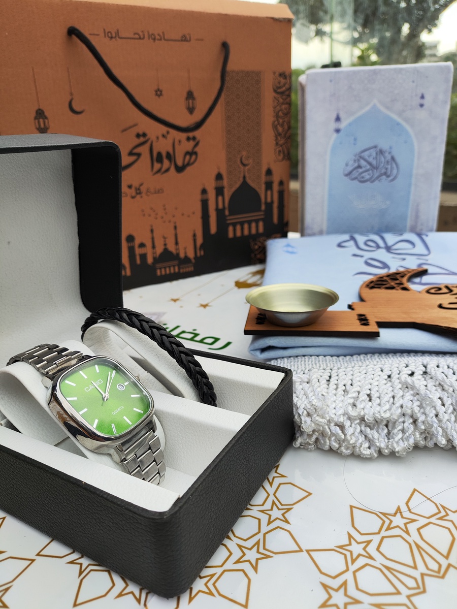 بوكس تهادوا و تحابوا ( مصحف / سجادة صلاة / اذكار / مبخره ) + ( بوكس + ساعة + بريسليت ) اختار لون البوكس من الاختيارات والشحن مجانا