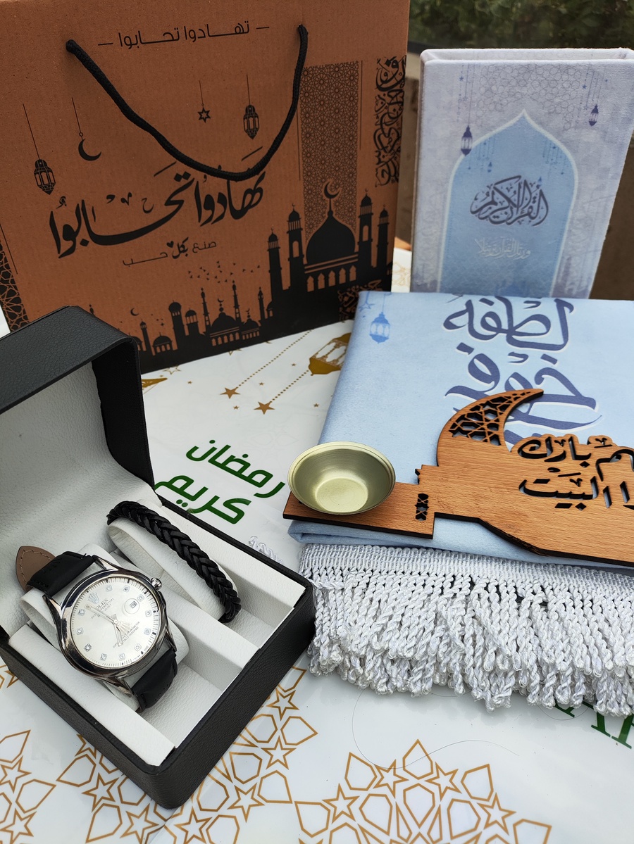 بوكس تهادوا و تحابوا ( مصحف / سجادة صلاة / اذكار / مبخره ) + ( بوكس + ساعة + بريسليت ) اختار لون البوكس من الاختيارات والشحن مجانا